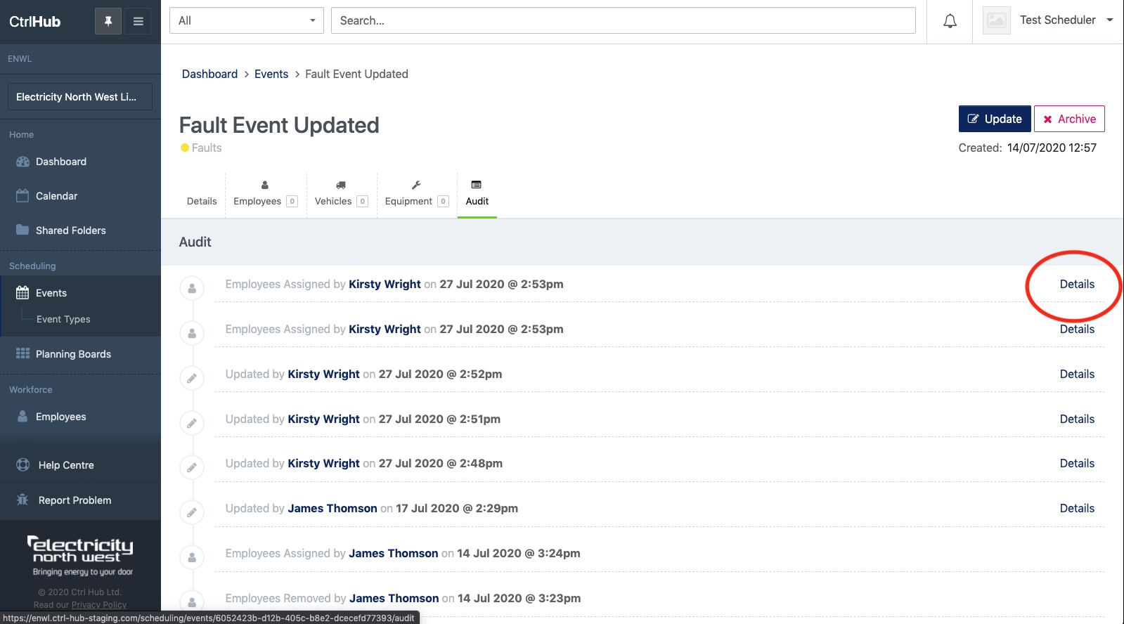 An Audit Trail is kept of all changes to events which allows you to trace any updates done by anyone to any of the events whether through bulk import, via the planning board or manually.