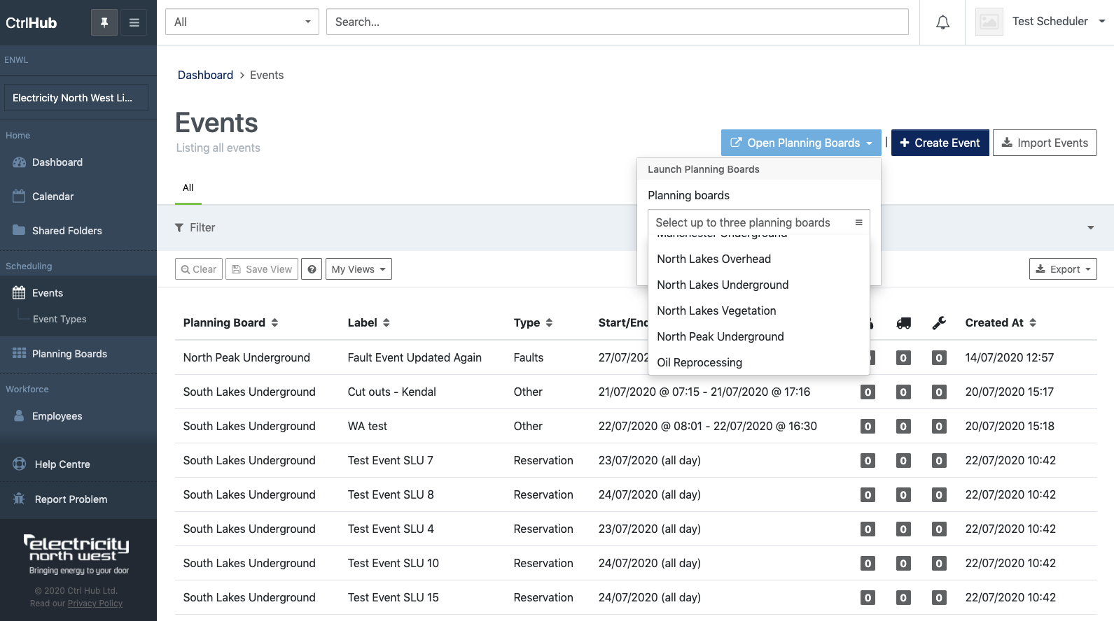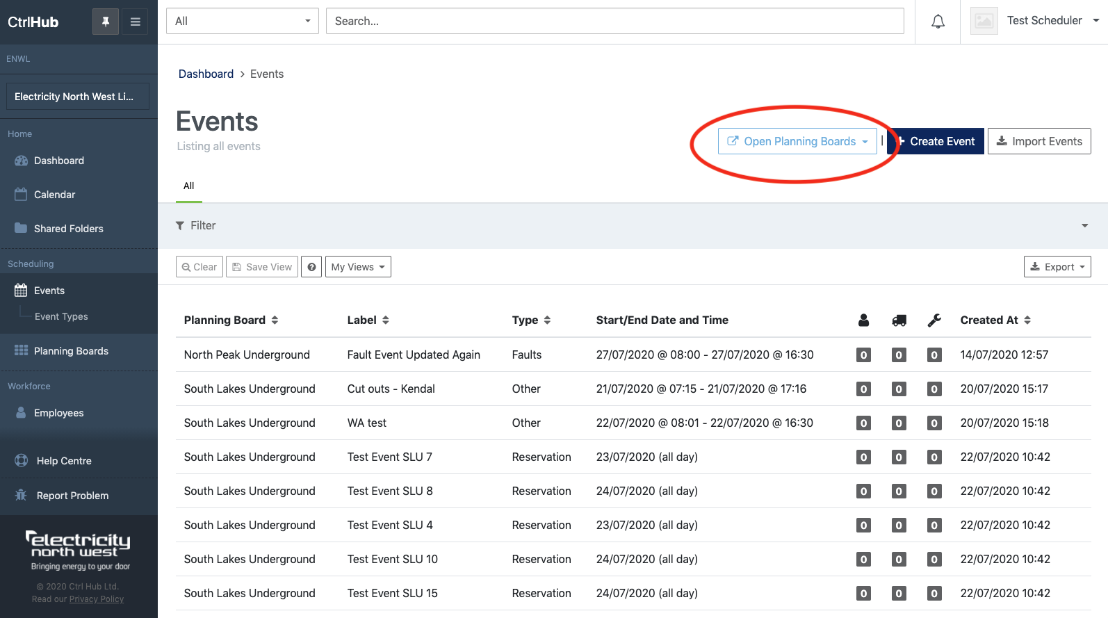 You can access planning boards from the "Events List" page using the "Open Planning Boards" Link highlighted below: