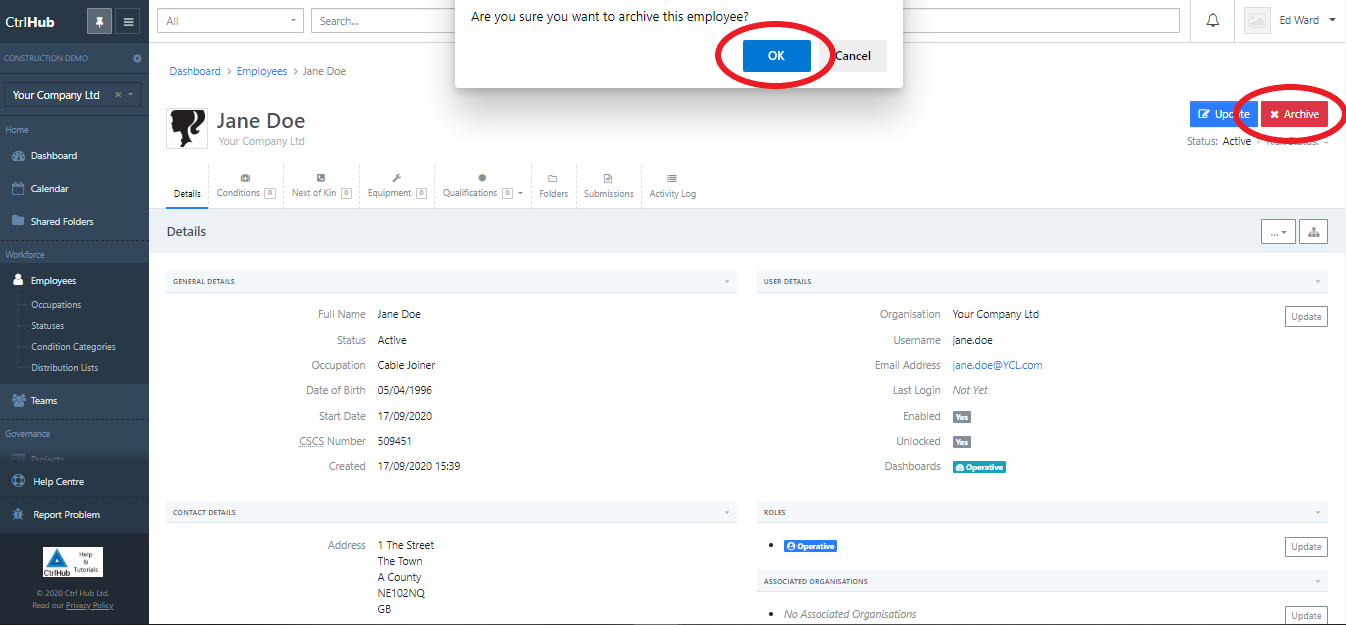 Note: archiving an employee does NOT permanently delete them. Any archived employees can be restored.