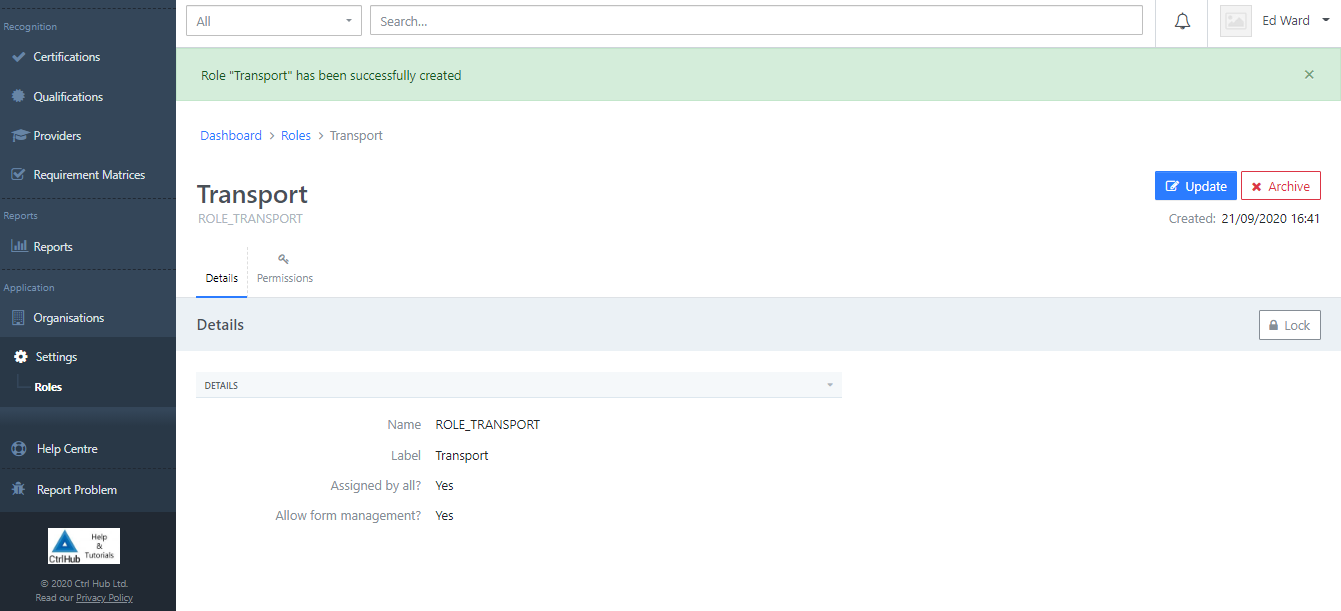 - Check 'Allow form management' if you wish the assigned user to access all forms regardless of Form assignment