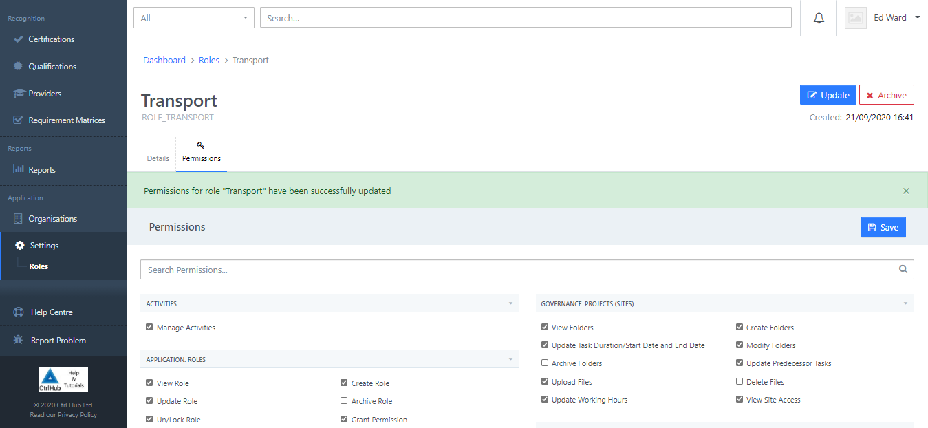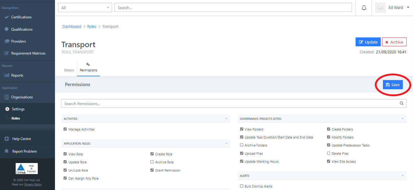 You can check any permissions you’d like the role to contain, then click the Save button: