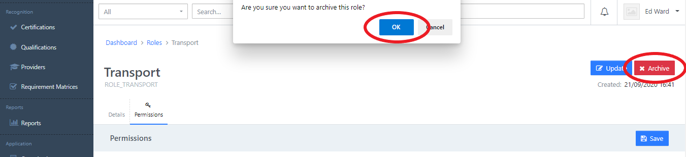 Note: archiving a role does NOT permanently delete it. Any archived roles can be restored.