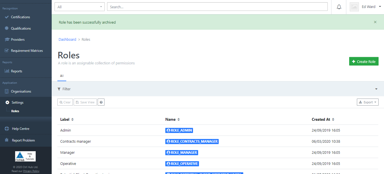 You will now be back on the roles listing page with a success message. The archived role will no longer be listed