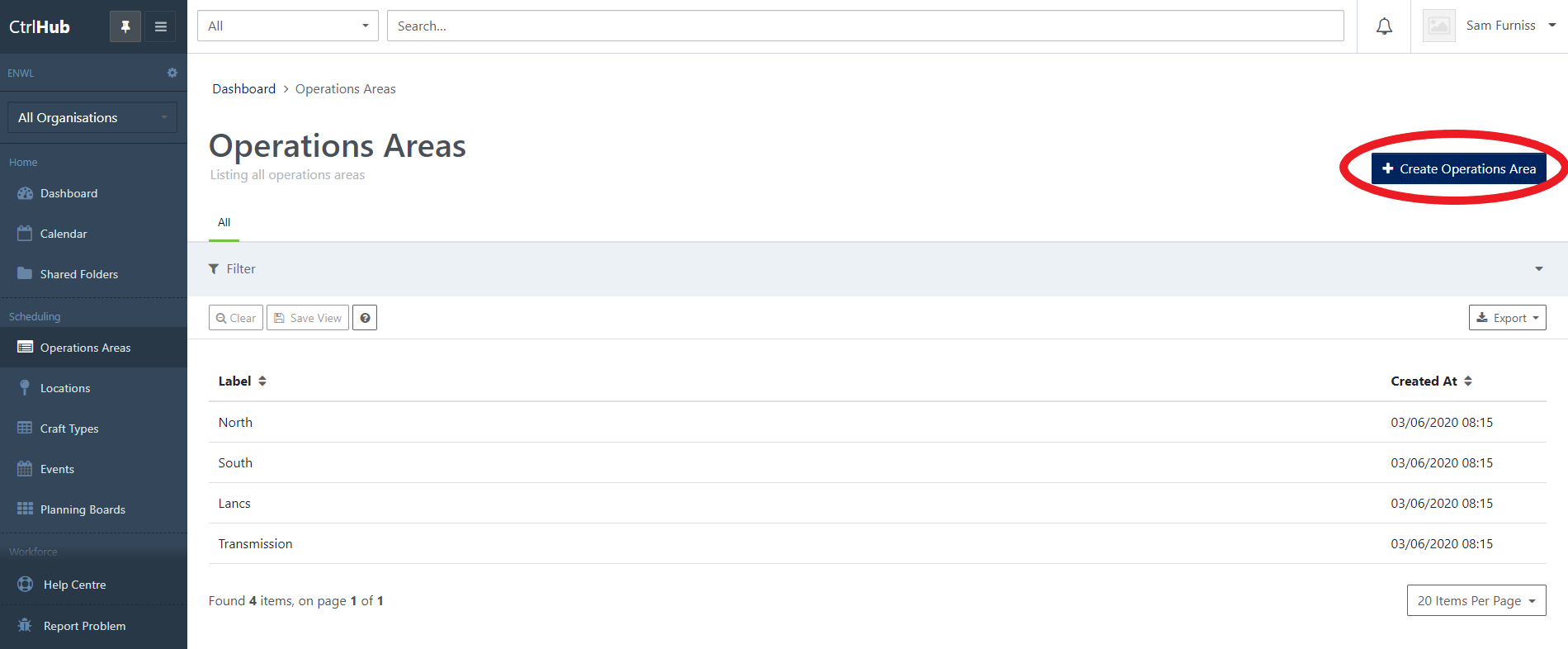 To create a new Operations Area select the Operations Area on your left hand Navigation menu