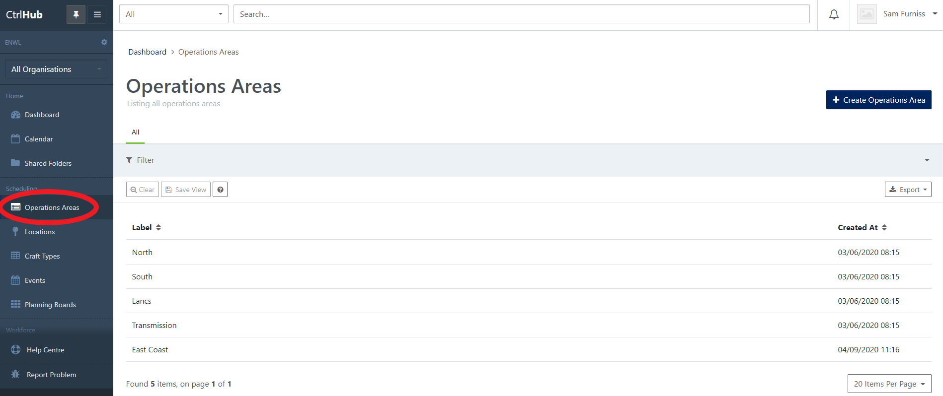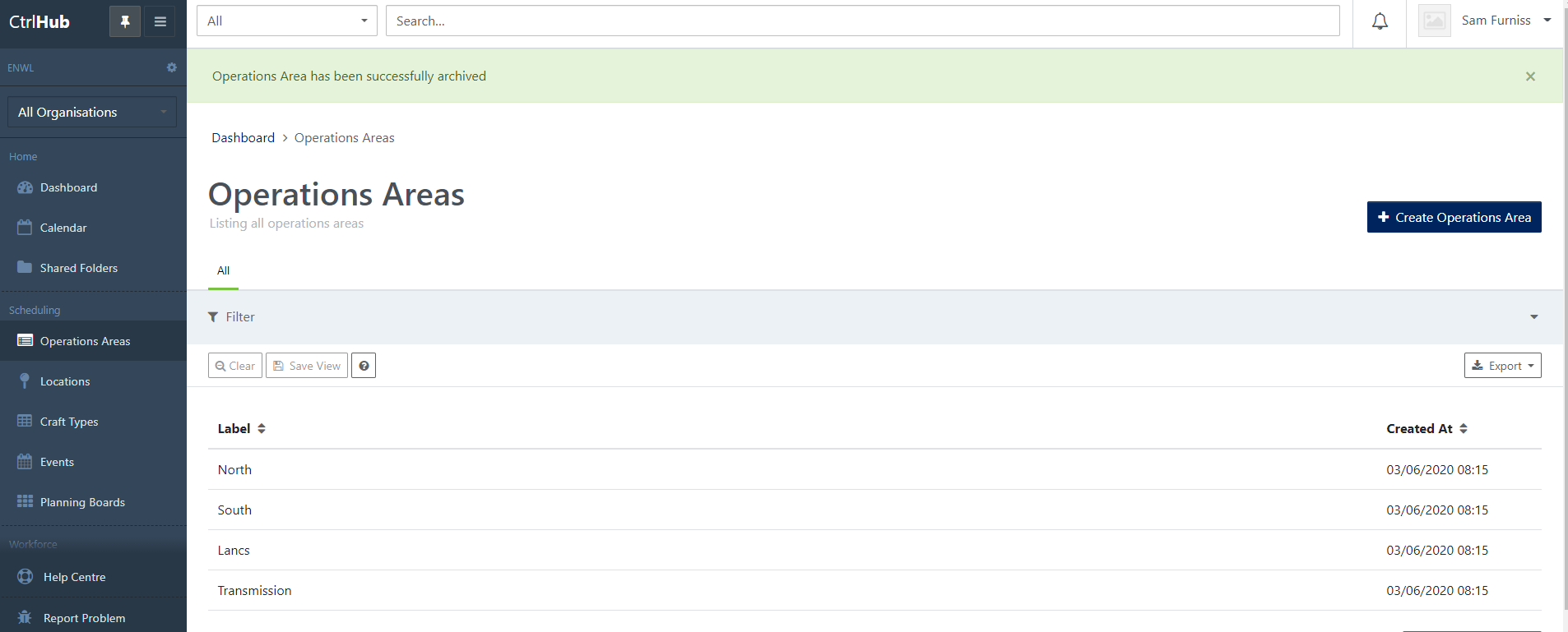 You will now be back on the Operations Area listing page with a success message. The archived Operations Area will no longer be listed: