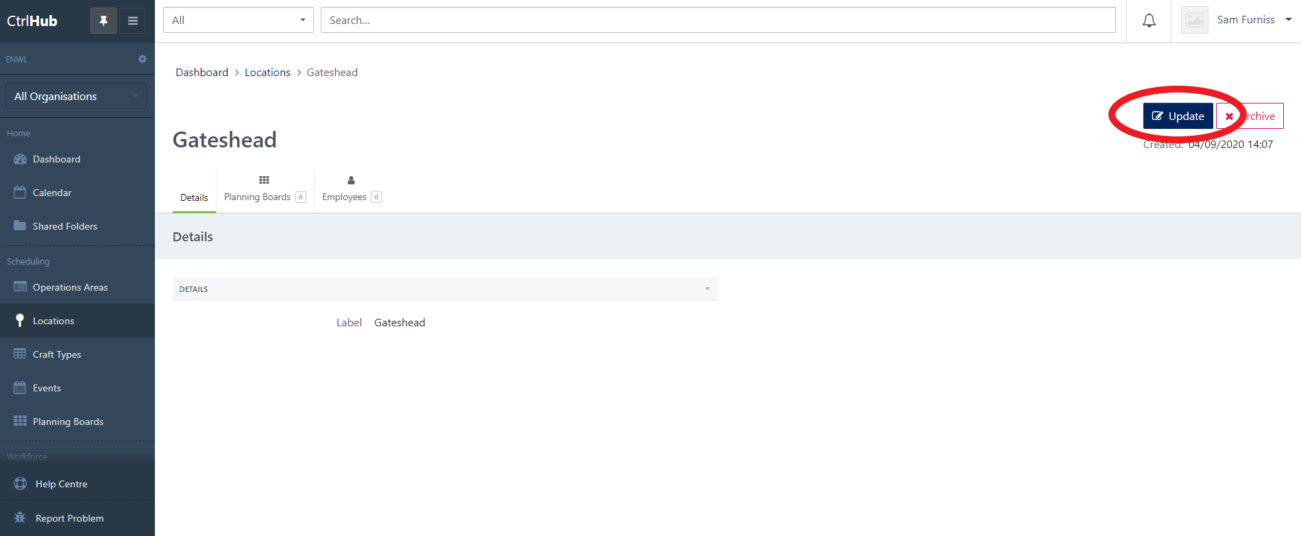 Once you submit the update, you will see a success message and be viewing the newly updated Location.