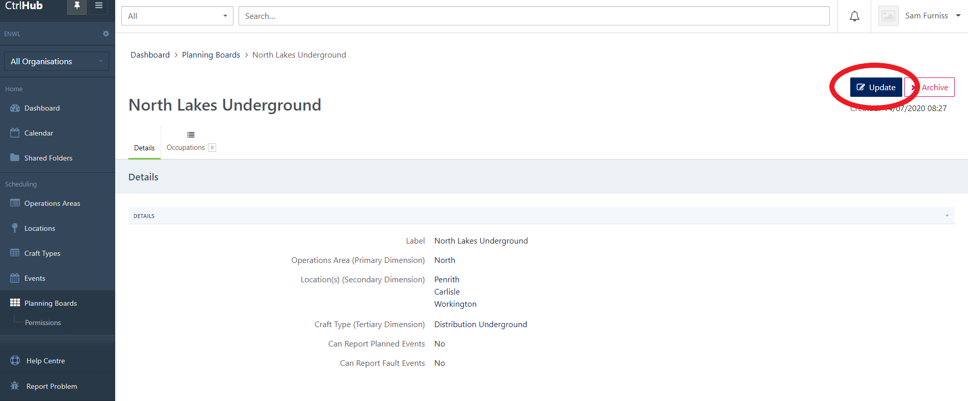 Select the Planning Board you wish to update from your Planning Board List and select Update