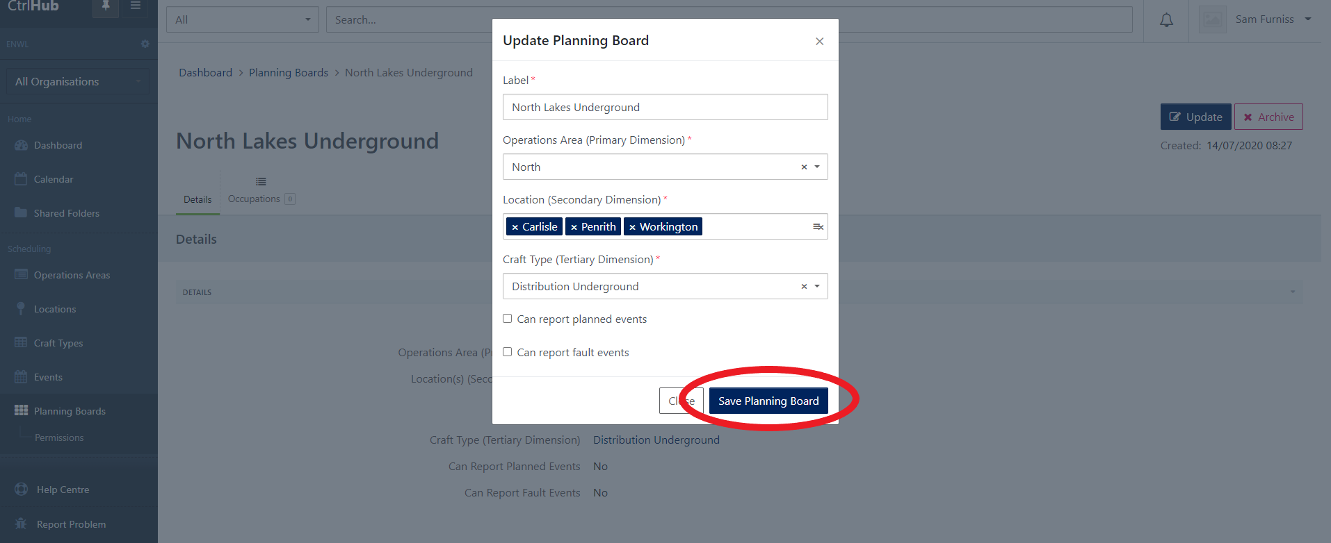 Once you have updated your Planning Board Label, select Save Planning Board.