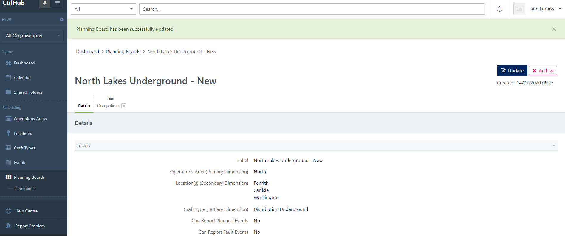 Once you have submitted the update, you will see a success message and be viewing the newly updated Planning Board.