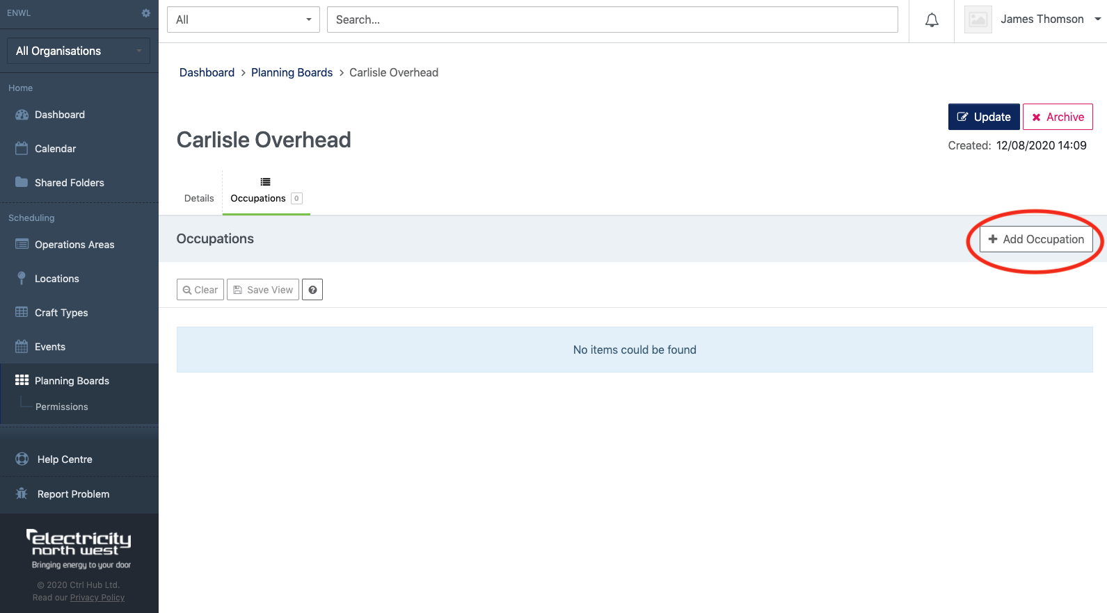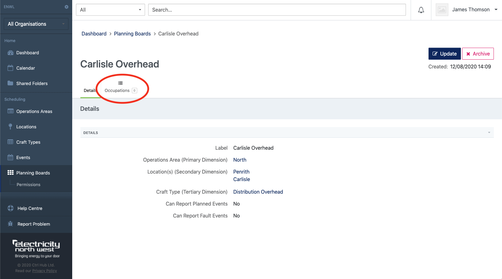 Select the Planning Board you wish to update from your Planning Board List and select The Occupations Tab.