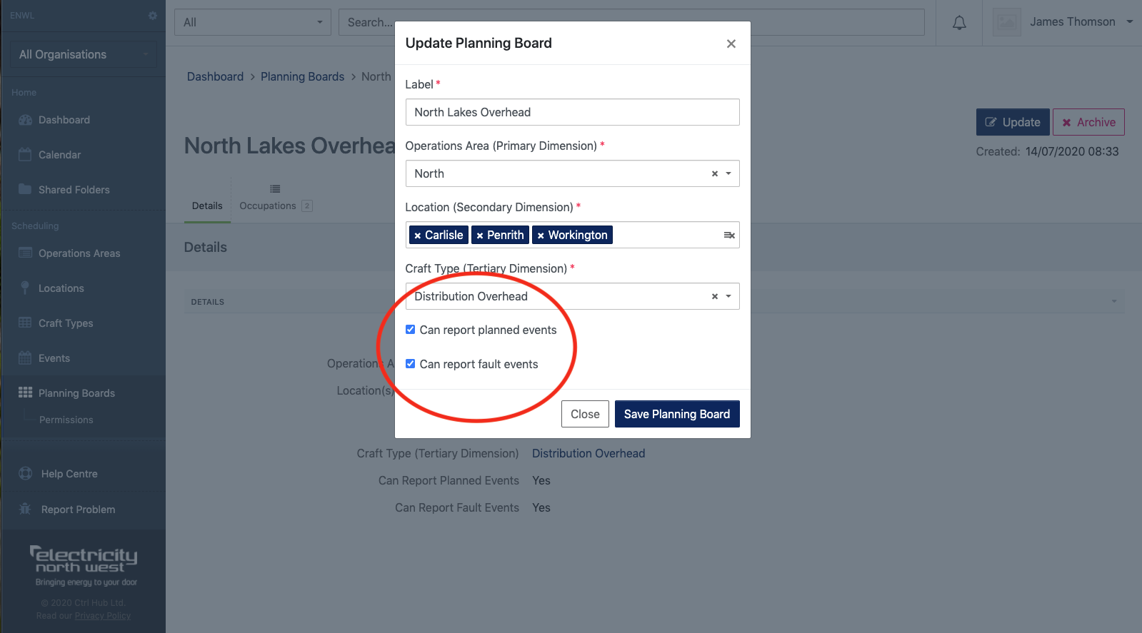 For Planning Areas that don't count both Planned and Faults you can adjust the settings when Updating a Planning Board as shown beneath: