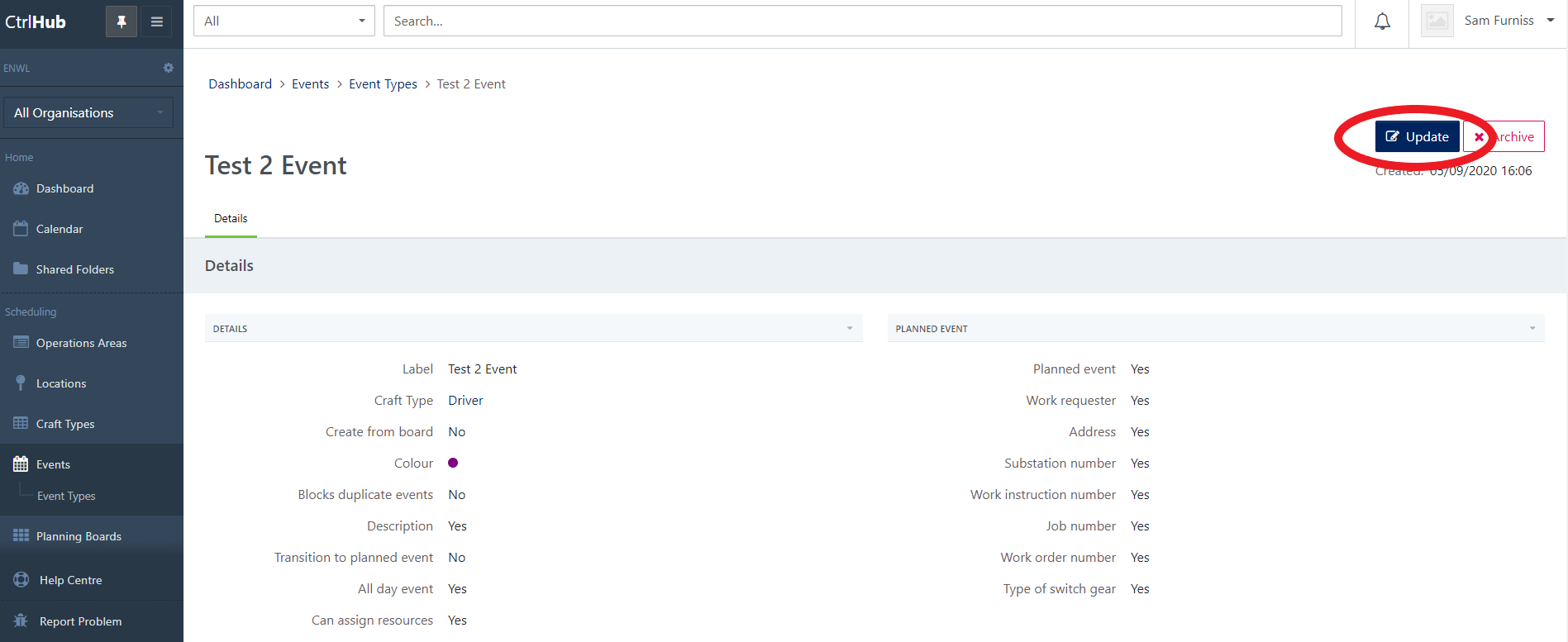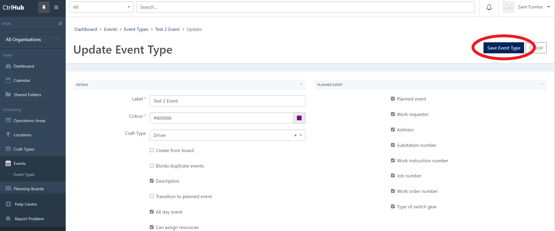 To update an Event Type, select Event Type on the your left hand Navigation menu beneath Events