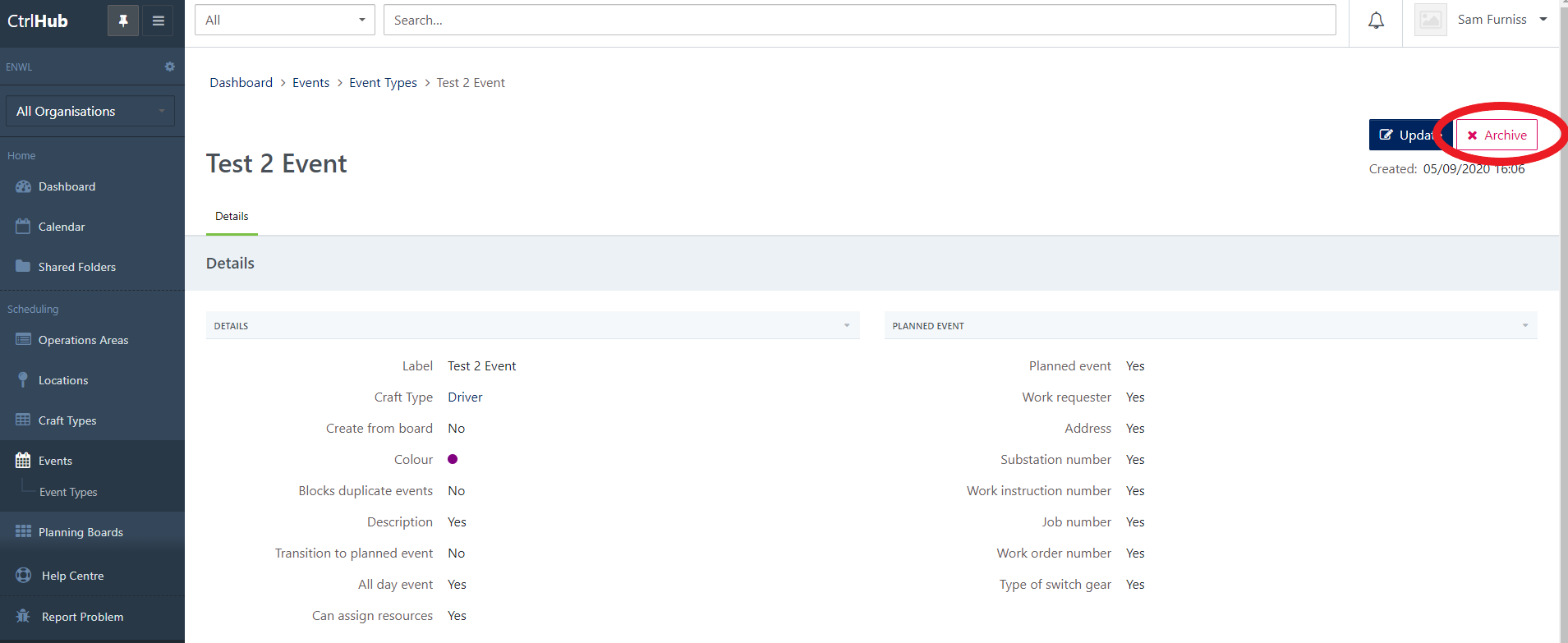 The system will ask you to confirm you want to archive the Event Type, select OK